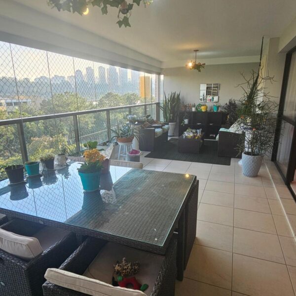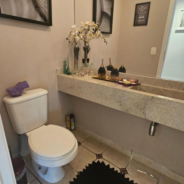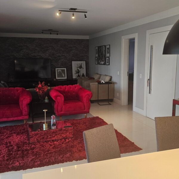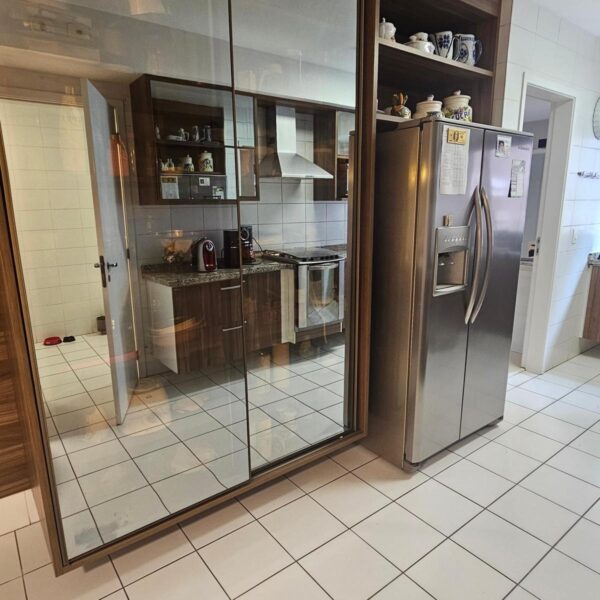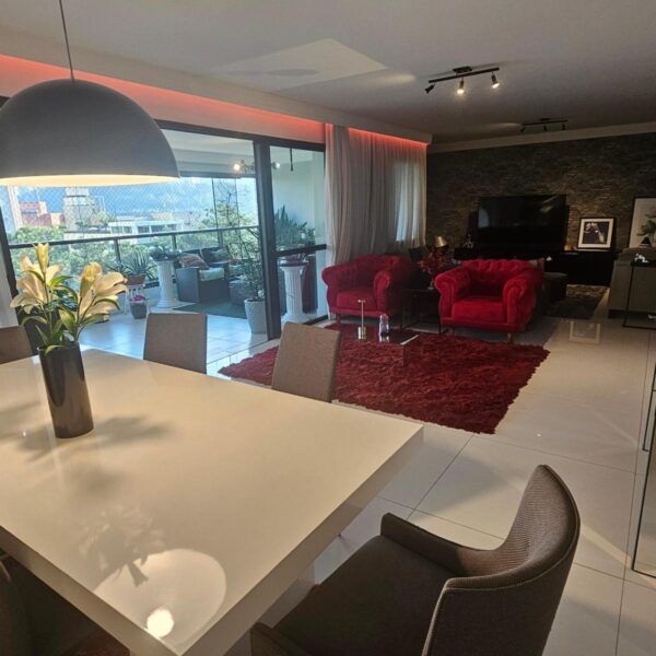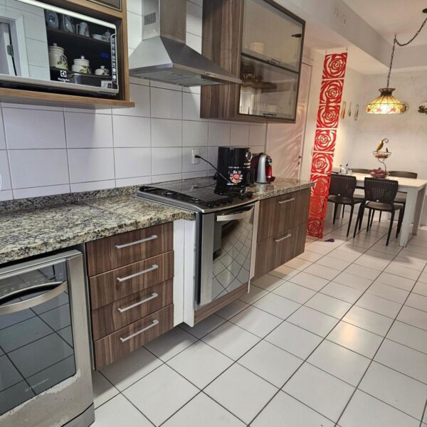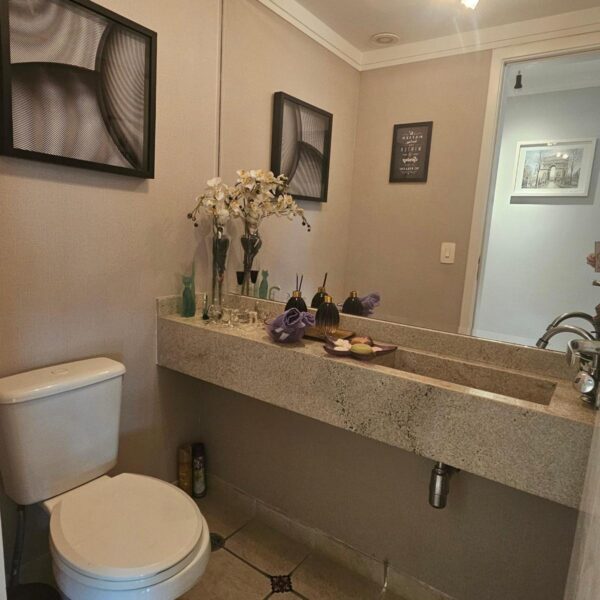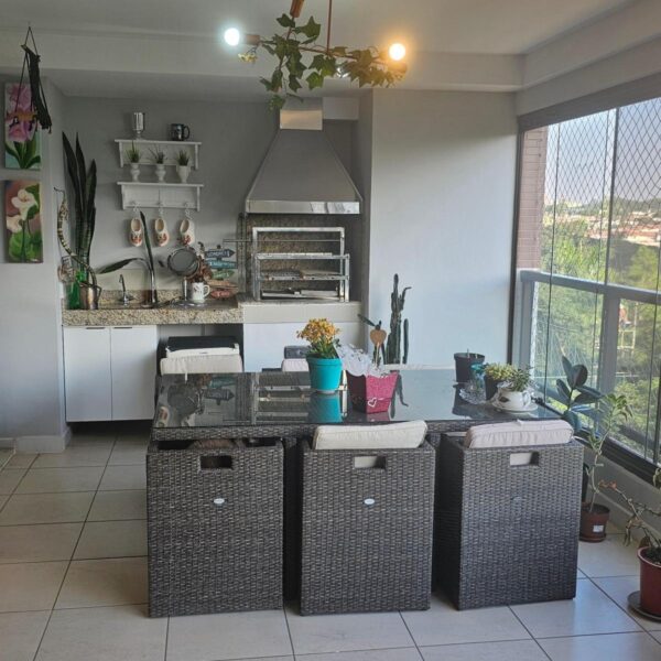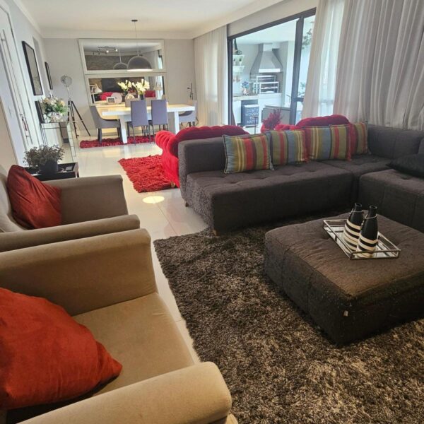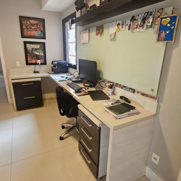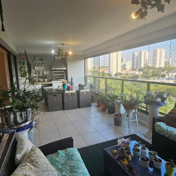 Com projeto moderno e funcional, o apartamento oferece sala ampla para três ambientes, varanda gourmet com churrasqueira, acabamentos refinados, e armários planejados Todeschini em todos os cômodos. Possui ar-condicionado, cozinha equipada, lavabo, dependência de serviço e depósito privativo.