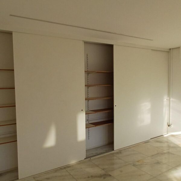 Armário com portas deslizantes e prateleiras