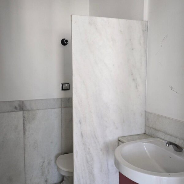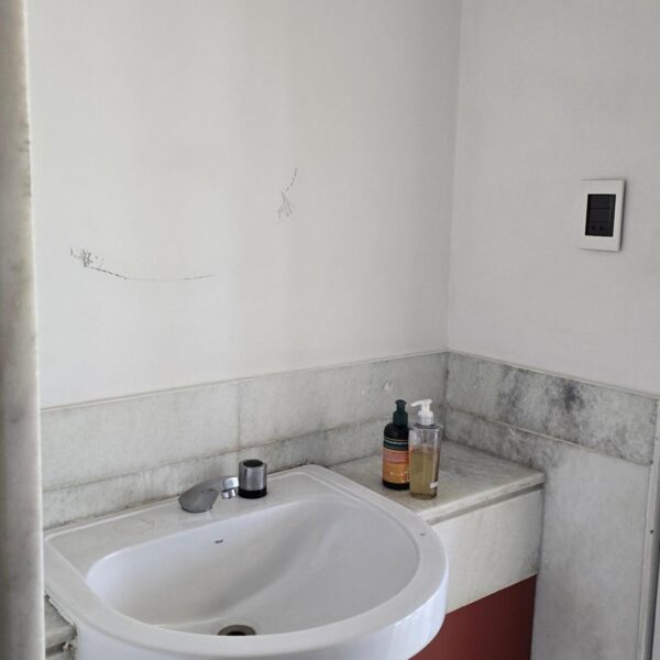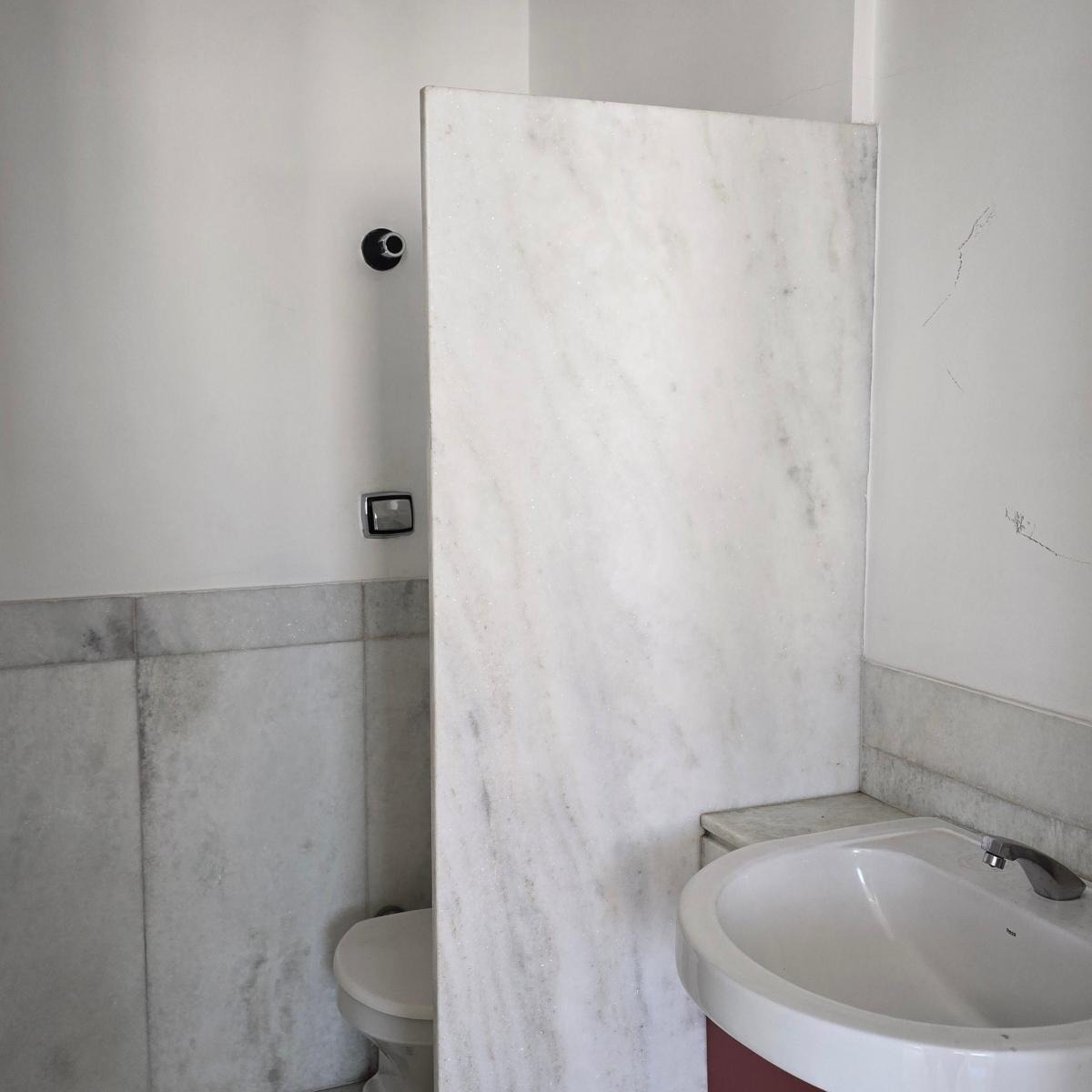 1 banheiro social com bancada e piso em mármore
